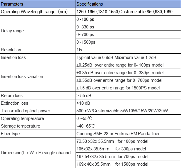 Unique delay mechanism,Lower polarization dependent loss(<0.1dB)