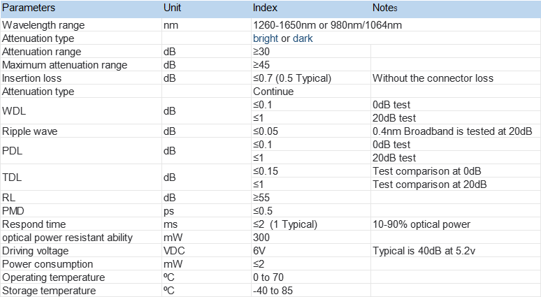 Dynamic Variable Optical Attenuator (DVOA) based on MEMS is an important component to realize power regulation in all-optical network. DVOA can realize the comprehensive remote control of all-optical network. Mainly used in: preset optical power equalization, channel transmission equalization, optical automatic gain adjustment, optical receiver protection, etc. The DVOA product developed by our company adopts MEMS control chip and unique optical design, which makes the product more miniaturized, lower cost, and more rapid response, with higher stability and reliability, and easy to manufacture.