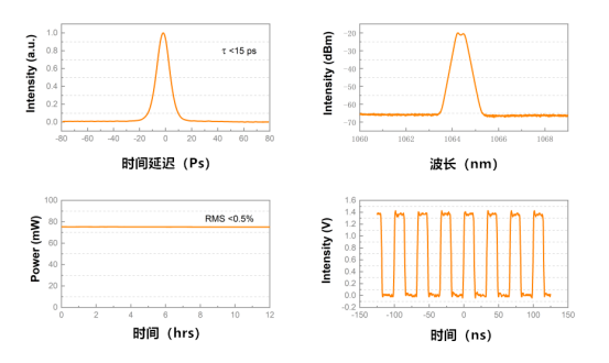 The laser is a picosecond-level ultrashort pulse laser based on fiber mode-locking technology, with an output wavelength of 1064nm. The 1064nm band is located in the near-infrared region and is a typical gain wavelength for neodymium-doped (Nd³⁺) or ytterbium-doped (Yb³⁺) fibers. It features high quantum efficiency, low thermal load, and good beam quality, making it suitable for high-energy, high-stability applications. With a pulse width <15ps, it falls into the ultrashort pulse category, enabling high peak power and low thermal damage, and is suitable for nonlinear optical processes (such as frequency doubling, sum-frequency generation, and optical parametric oscillations).